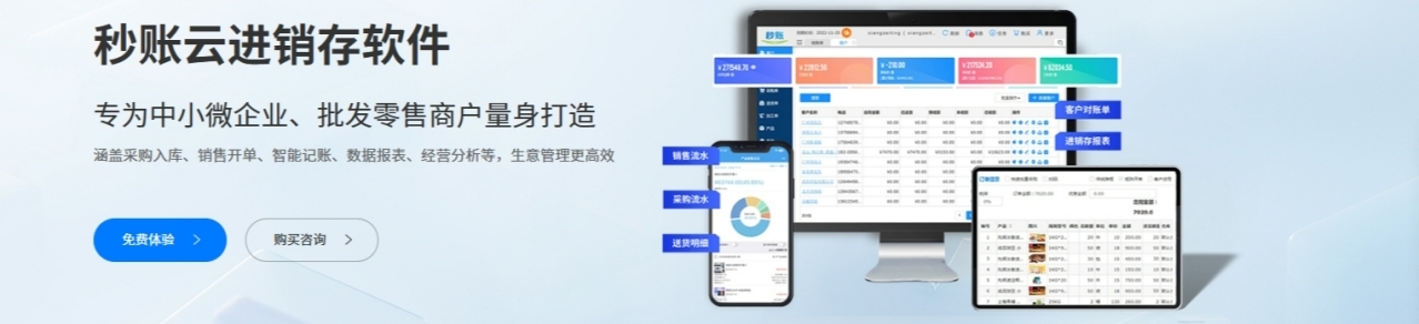 进销存是秒账开发的一款专为中小微企业、批发零售商户量身打造的进销存软件。秒账进销存拥有采购入库、销售开单、智能记账、数据报表、经营分析等功能,打破传统经营管理模式的桎梏。不仅是仓库管理,员工管理、销售、采购都可以线上统一管理。