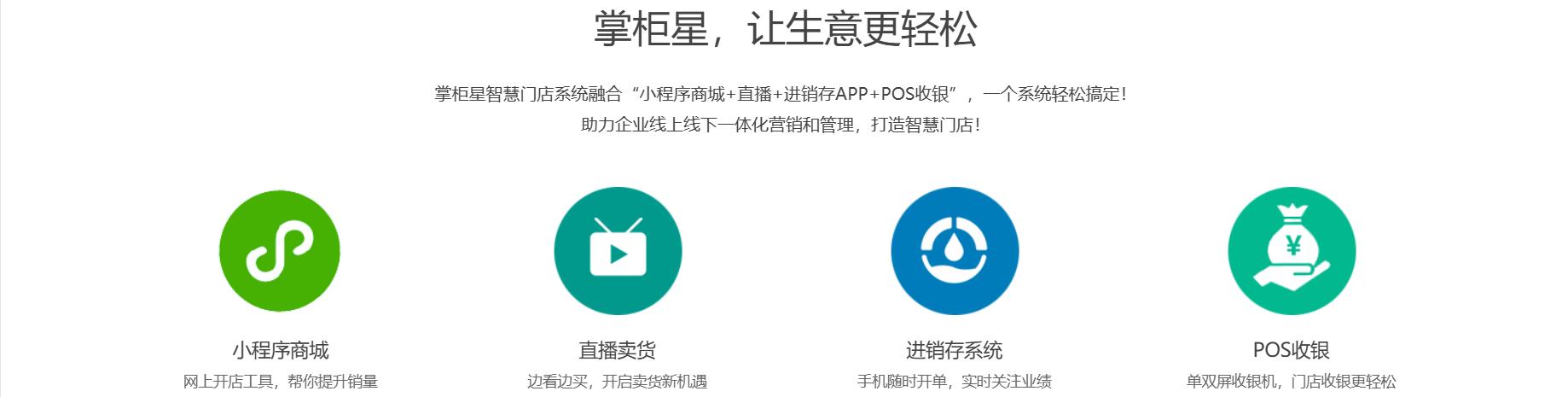 掌柜星是一款新零售智慧门店系统,主要面向中小零售商家,提供进销存管理、小程序商城、直播带货、 POS 收银等功能,支持多端数据实时同步和智能硬件设备对接,帮助商家实现线上线下一体化经营,提升管理效率和销售业绩。